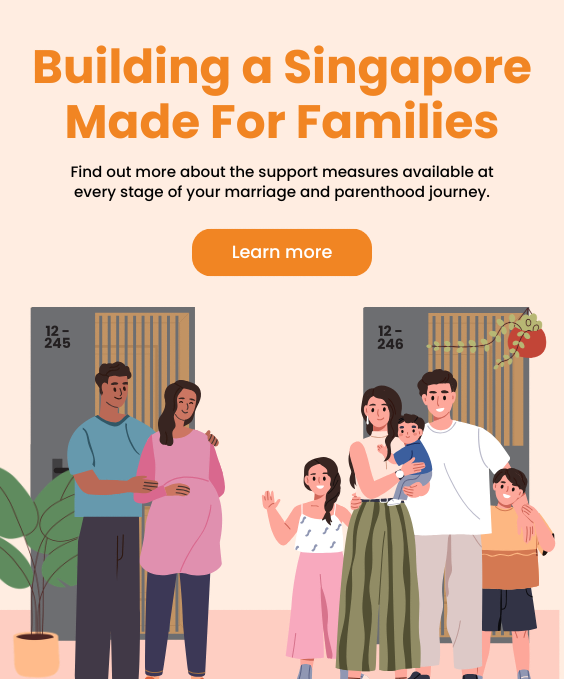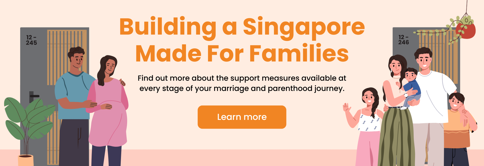 Find out more about the suite of support measures available for Singaporean couples at every stage of their marriage and parenthood journey. Together with businesses, employers and the community, we are building a Singapore Made For Families.